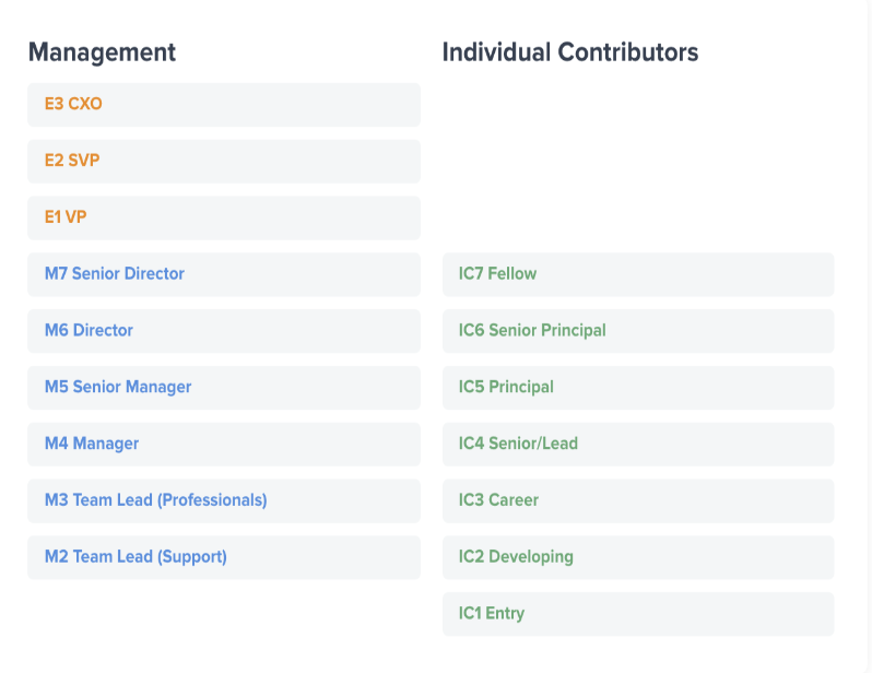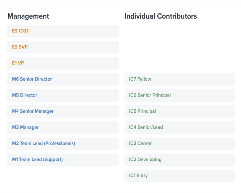 Manager and IC levels are staggered (e.g., M3 aligns with IC4).