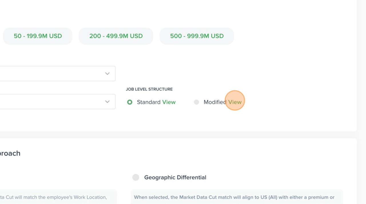 The Modified Job Level Structure option aligns the management job level numbers to the individual contributor job levels, but has no impact on market pricing.