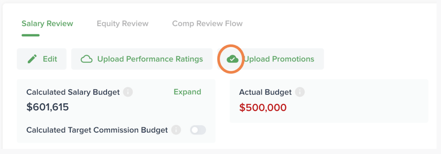 Promotions uploaded before or during a review in Planning or In Progress status will affect the compensation review budget.
